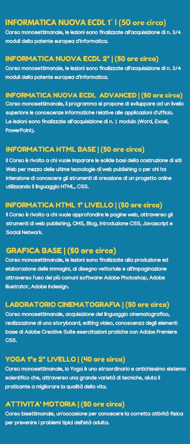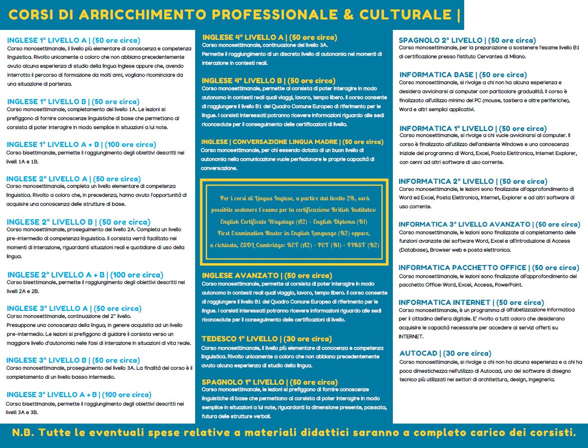 ELENCO DEI CORSI DI ARRICCHIMENTO PROFESSIONALE & CULTURALE